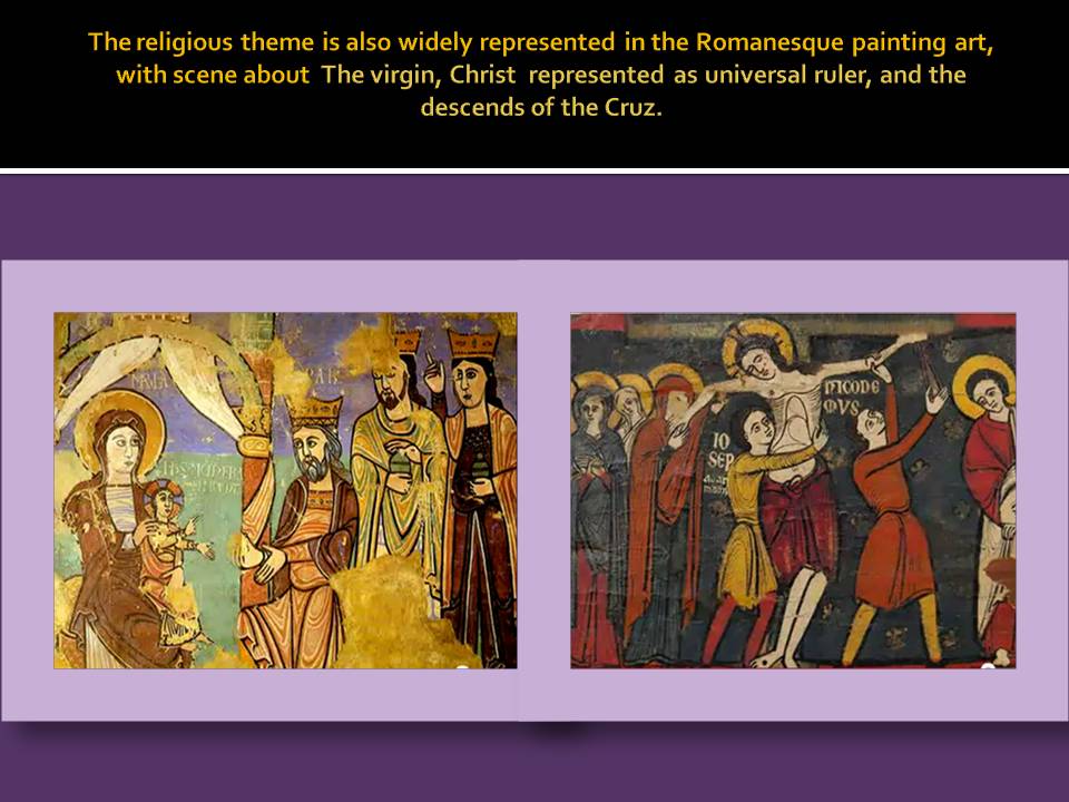 Painting in Romanesque period has a notable development, because the vast space of smooth walls were appropriate to the pictorial decoration; therefore, the painting was also a subordinated art to the architecture. The need to get a quick religious impromptu in the spectator as soon as they approach the interior of this buildings made the use of painting a valuable resource.